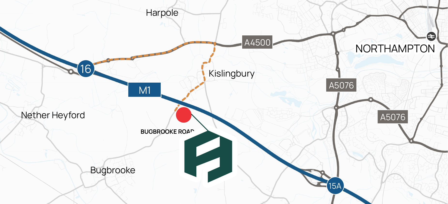 The development has excellent connectivity being located approximately 1 mile from the A4500 which provides direct access to Northampton Town Centre and the M1 at both J15A and J16, which then provides links to the National Road Communications Network.