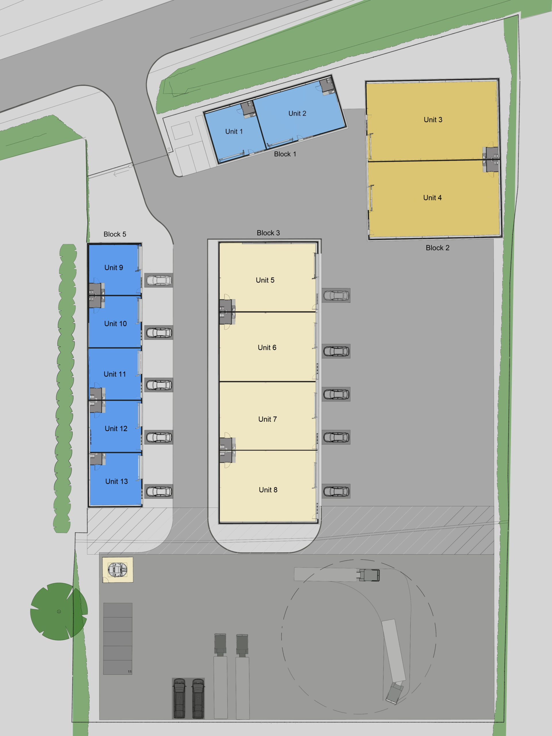 The development comprises 13 brand new industrial / warehouse units providing total space of 22,660 sq ft (2,105.16 sq m).
